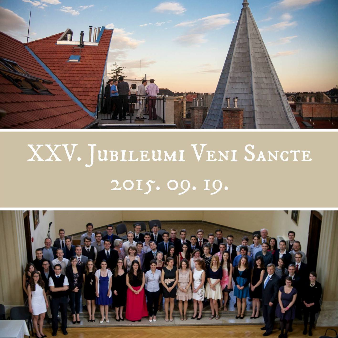 A jubileumi visszatekintés Veni Sanctéval kezdődött, melyen nagy számban részt vettek a szakkollégium jelenlegi és egykori hallgatói, oktatói. A szentmisét Forrai Tamás Gergely, a Jézus Társasága Magyarországi Rendtartománya provinciálisa mutatta be.