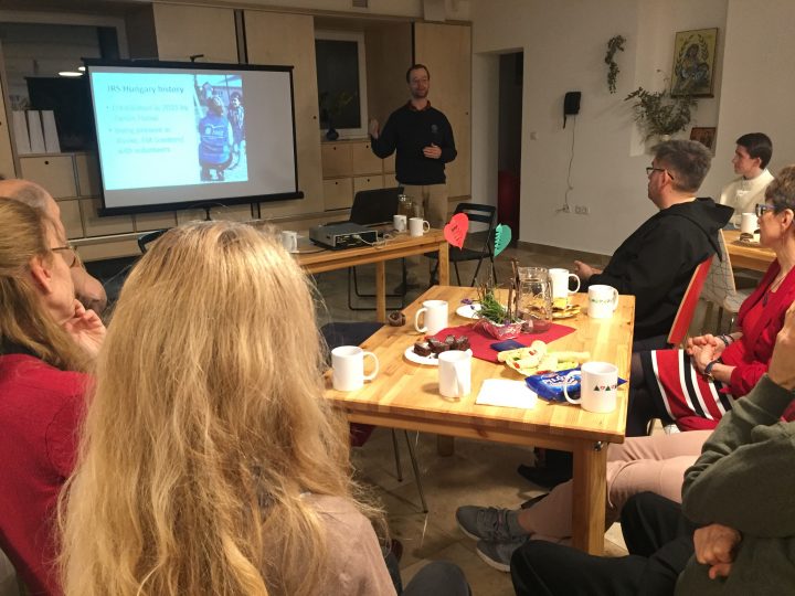 Március utolsó csütörtökjén a Szent Szabina kápolna és a Szent Benedek Bencés tanulmányi ház meghívására Péterhegyre látogattunk. Havi rendszerességű, „Bencés Bár” nevű programsorozatukban a kápolna körül szerveződő közösség meghívott előadók segítségével jár körbe olyan kérdéseket, amelyek a keresztény hitünknek a mindennapokban való életre váltását segítik. Erre hívtak meg minket, hogy egy alkalommal a menekültkérdésről adjunk elő.